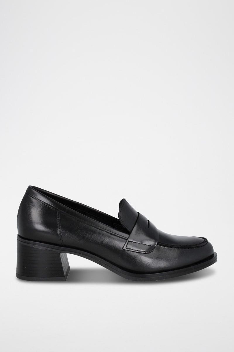 Mocassins à talons en cuir.