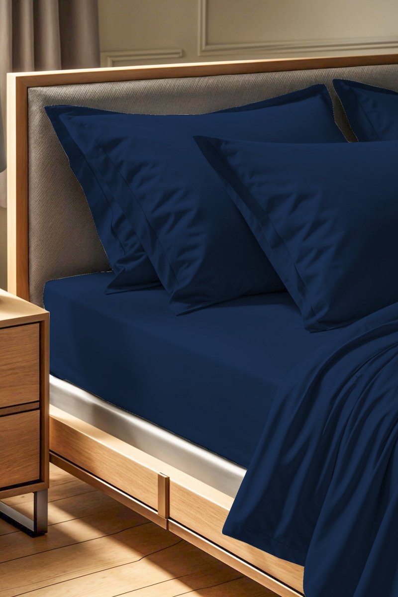 Drap-housse en coton renforcé 57 fils/cm² Tonne Marie - Bleu foncé