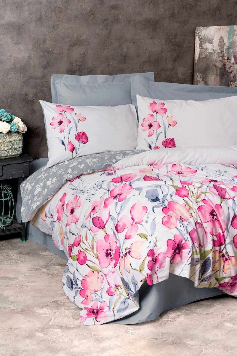 Parure de couette en coton 57 fils/cm² Carla - Blanc et rose