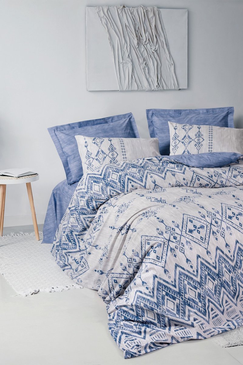 Parure de couette en coton 57 fils/cm² Cleo - Bleu