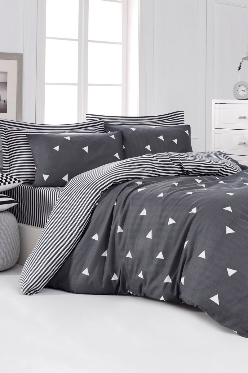 Parure de couette réversible en coton 48 fils/cm² Üçgen - Gris