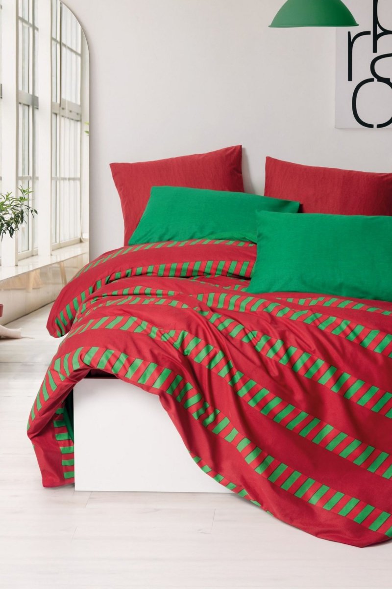 Parure de couette réversible en coton 57 fils/cm² - Vert