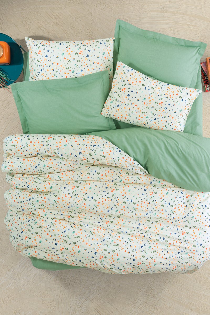 Parure de lit en coton 57 fils/cm² Lola - Vert et blanc