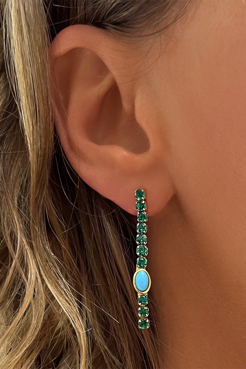 Boucles d'oreilles pendantes serties de zirconiums et d'une turquoise synthétique.