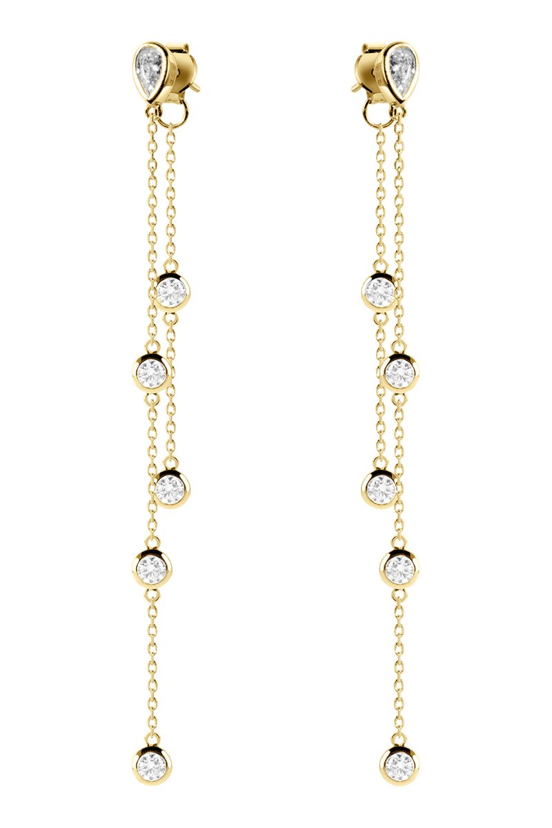 Boucles d'oreilles pendantes dorées à l'or fin jaune serties de zirconiums.