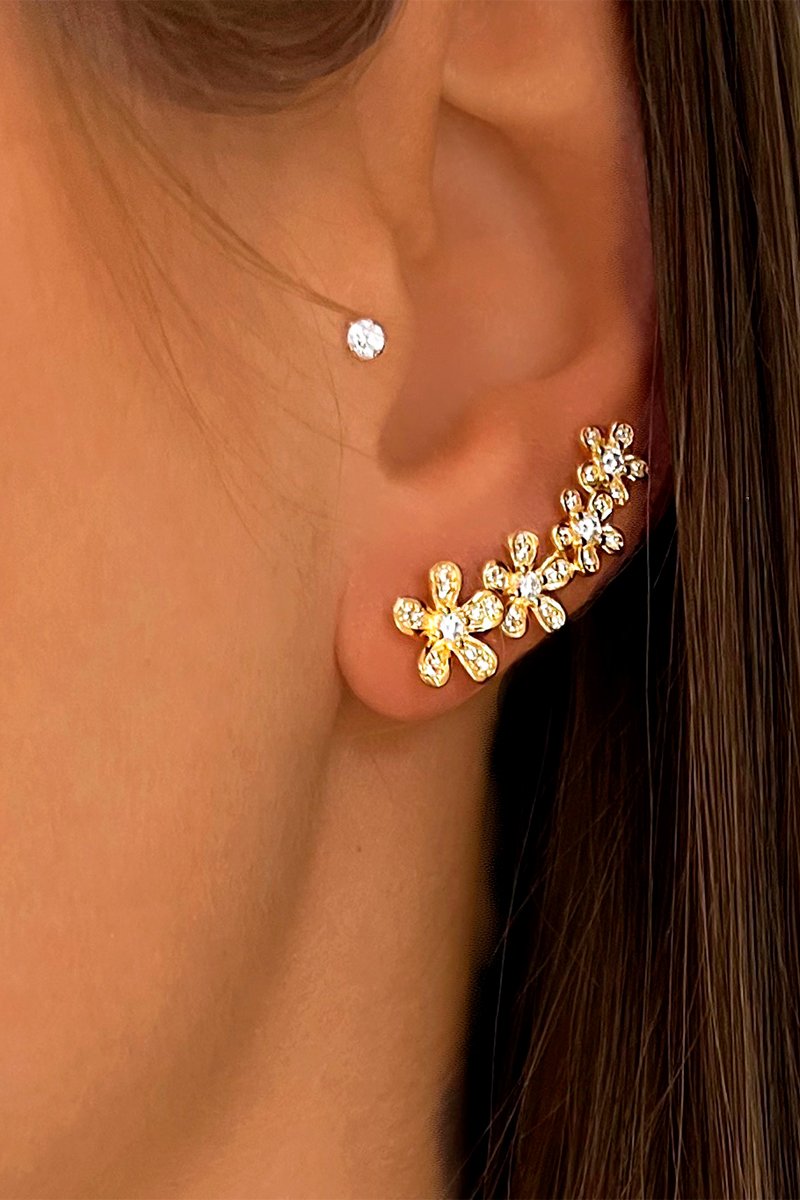Puces dorées à l'or fin jaune serties de zirconiums.