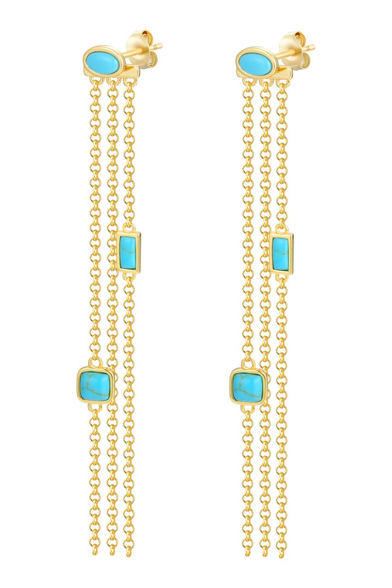 Boucles d'oreilles en laiton plaqué serties de turquoises synthétiques.