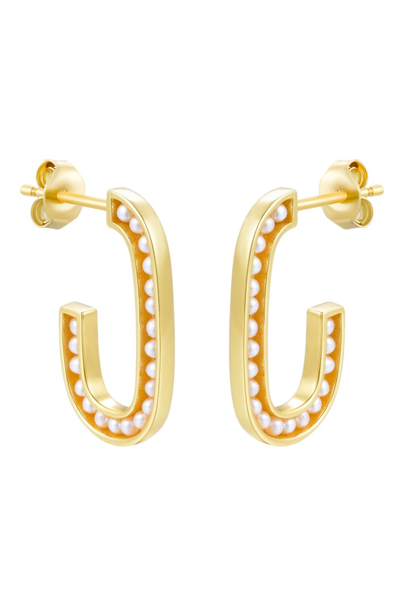 Créoles dorées à l'or fin jaune serties de perles d'imitation.