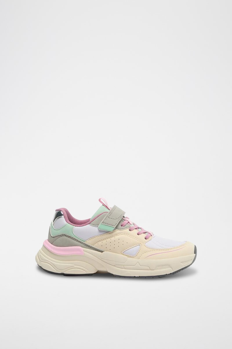 Fermeture à lacets et par scratch.