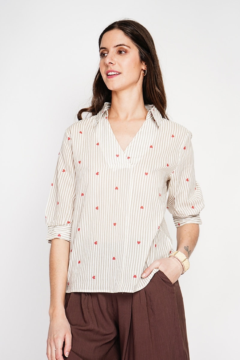 Motifs à rayures et cœurs.