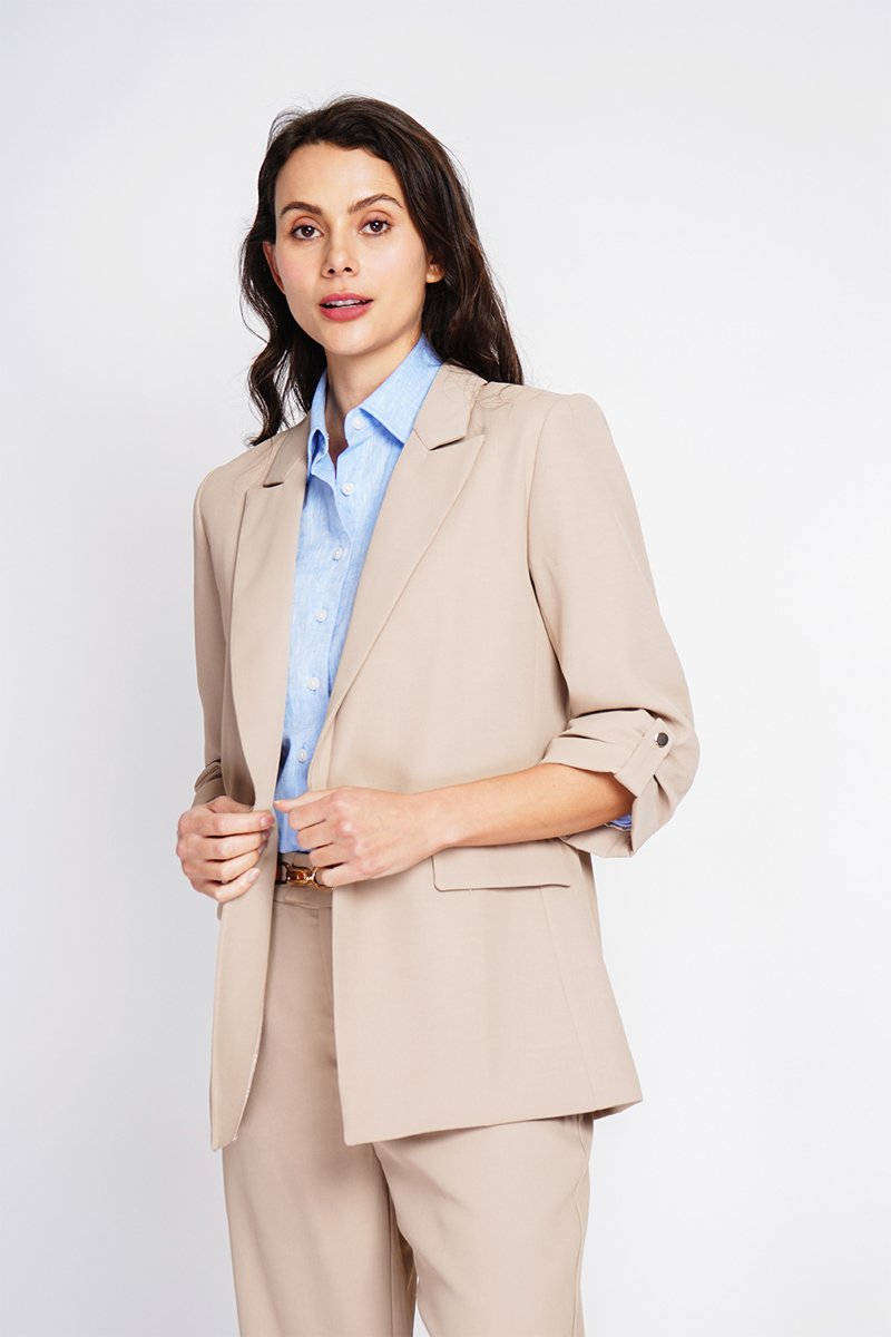 Veste à manches 3/4 retroussables par patte boutonnée.