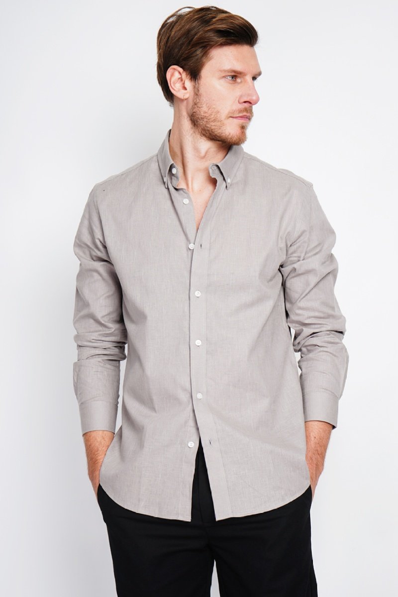 Chemise regular en lin à manches longues boutonnées.