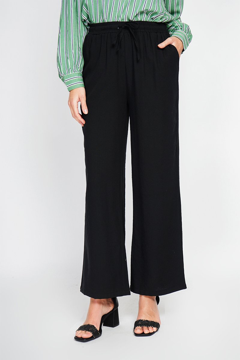 Pantalon en lin taille haute - Noir