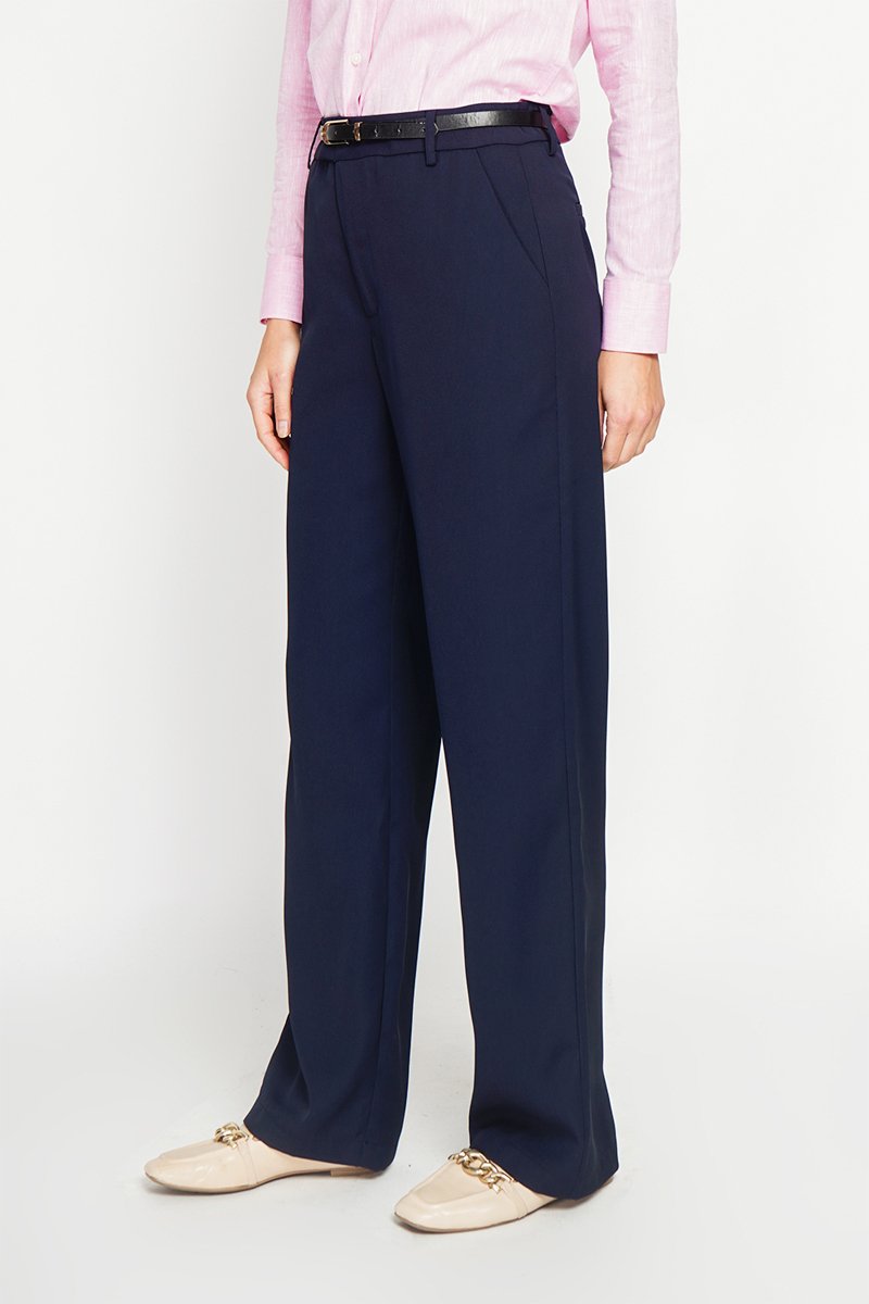 Pantalon droit taille haute - Bleu