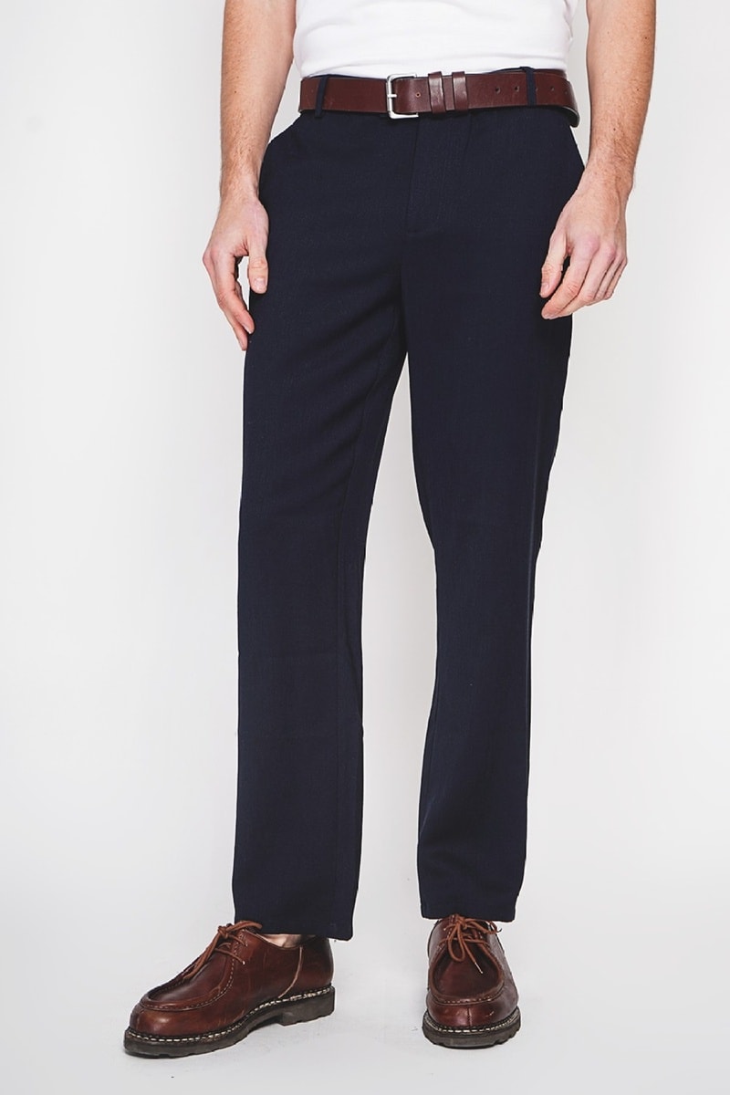 Pantalon droit en lin - Bleu marine