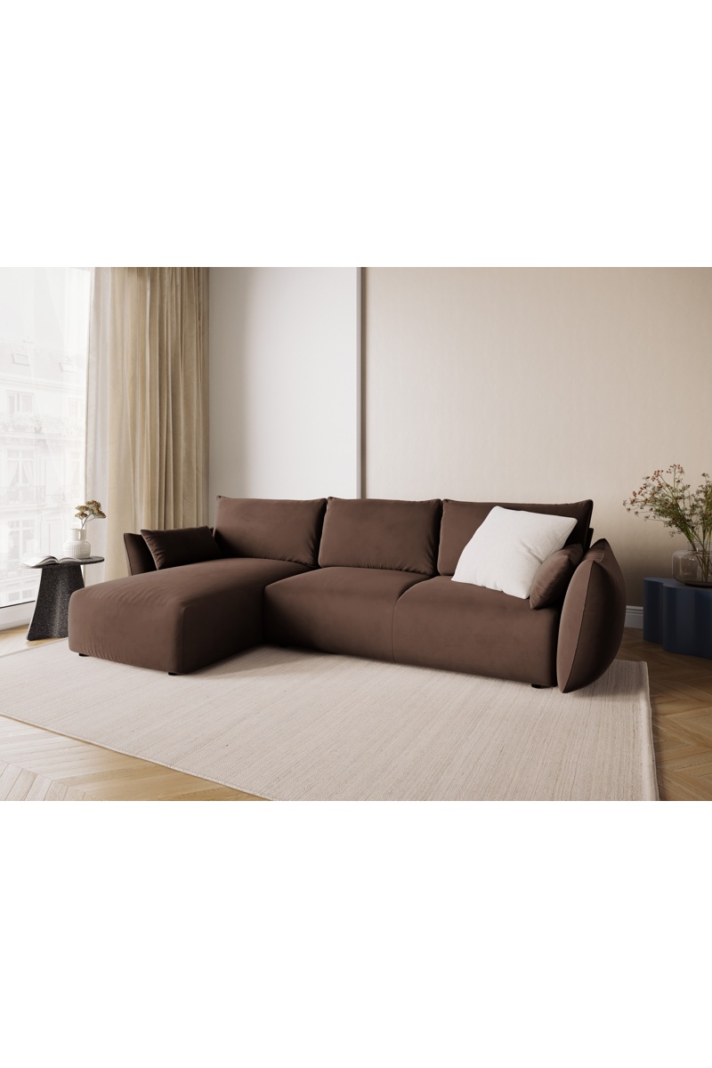 Canapé d’angle gauche convertible Matera - Marron - 4 places - En tissu velours