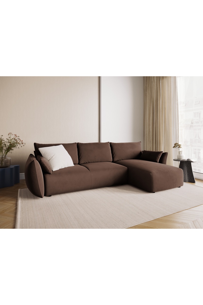 Canapé d’angle droit convertible Matera - Marron - 4 places - En tissu velours