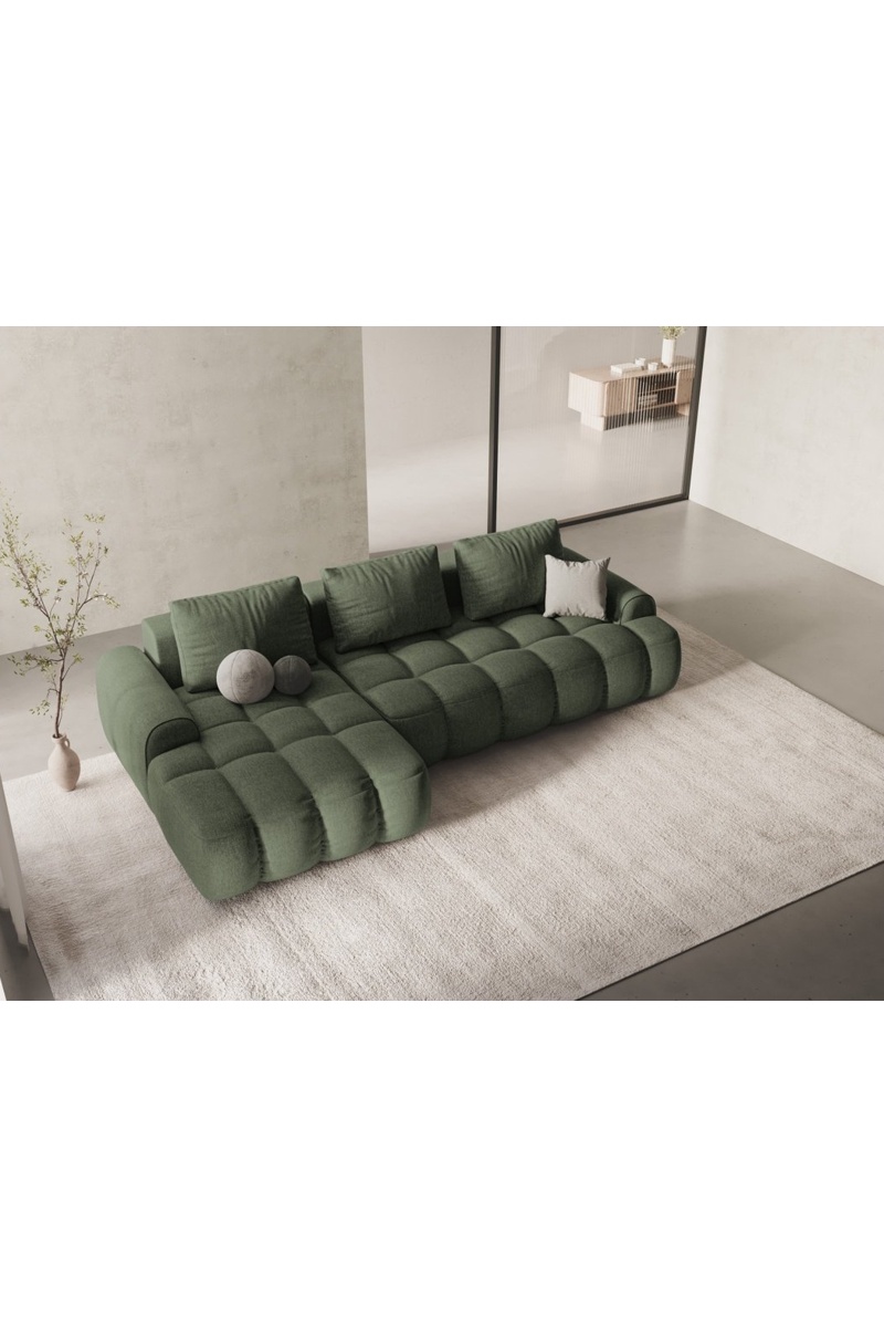 Canapé d’angle gauche convertible Linz - Vert olive foncé - 3 places - En tissu structurel