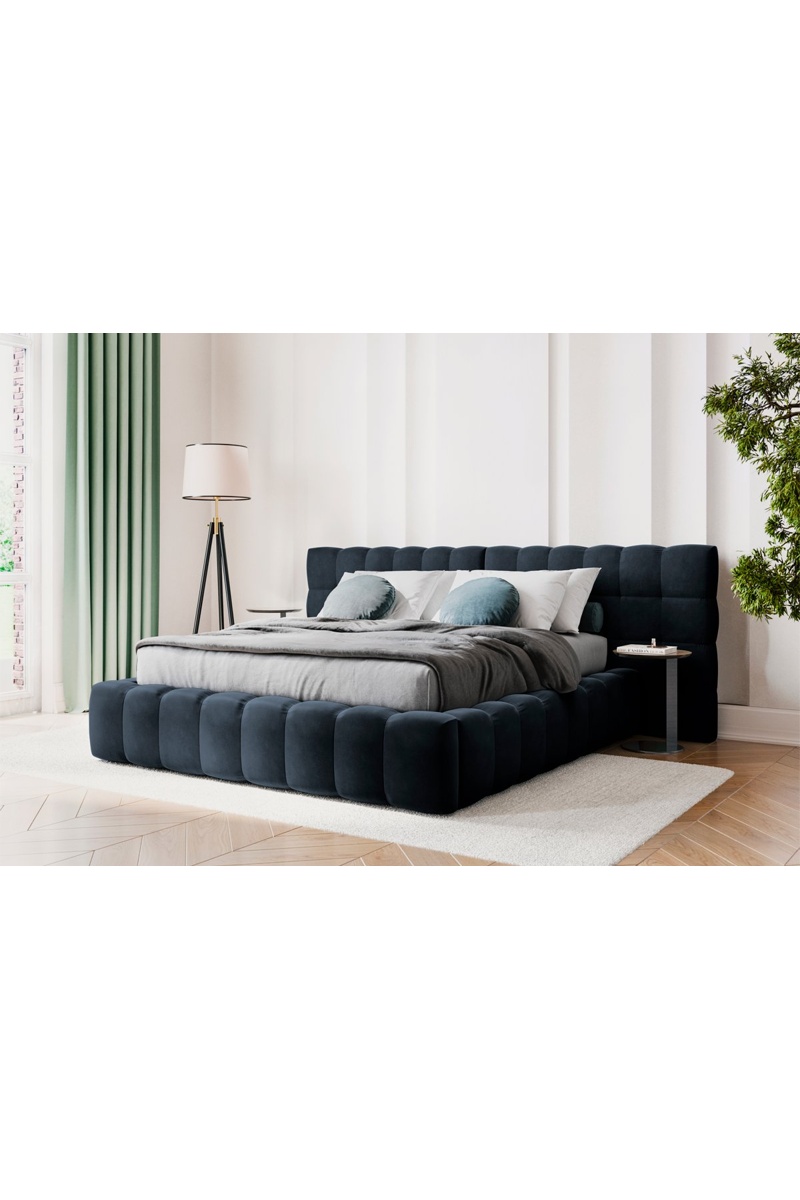Lit-coffre Bali - Bleu foncé - Toucher velours