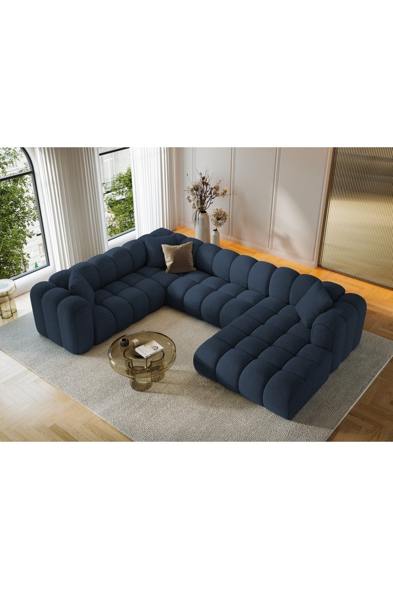 Canapé d’angle gauche panoramique modulaire Arden - Bleu roi - 6 places - En tissu structurel