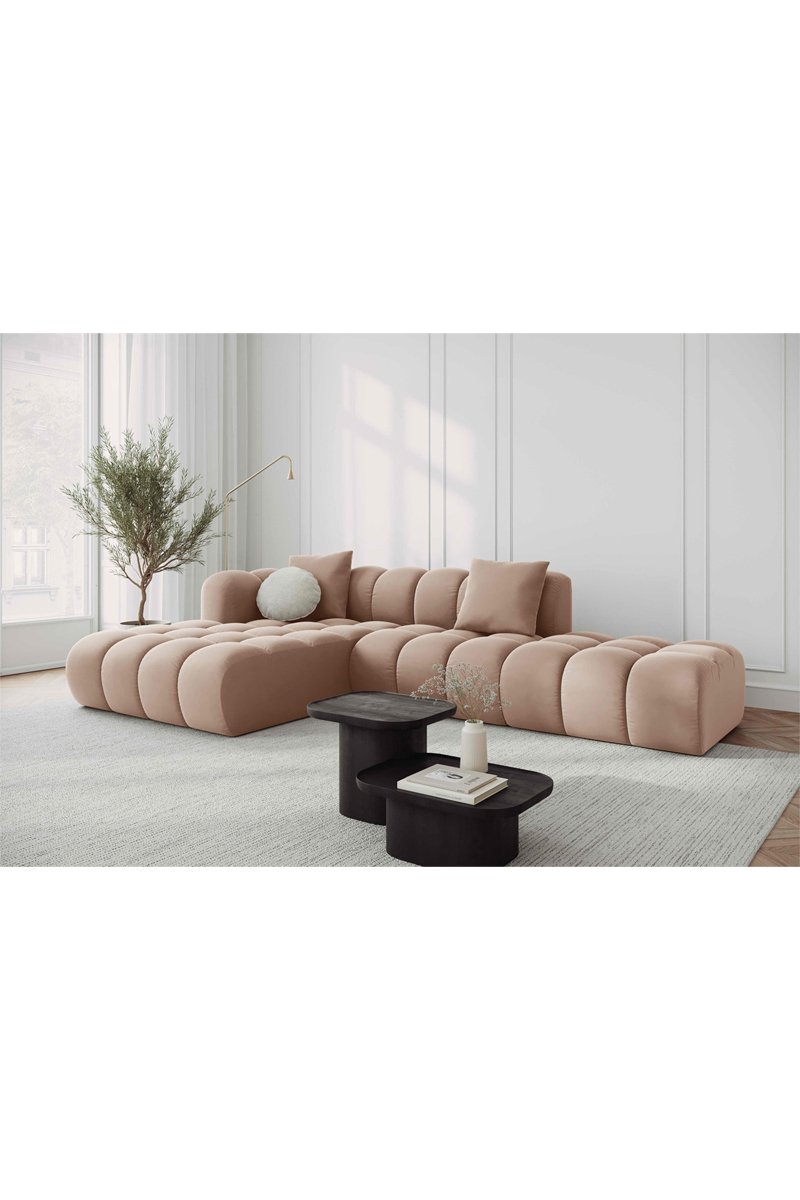 Canapé d'angle gauche Halley - Beige - 5 places - En tissu velours