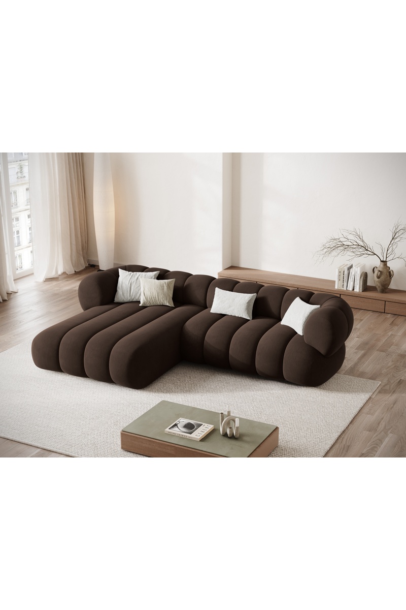 Canapé d'angle gauche Koge - Marron - 5 places - Toucher velours