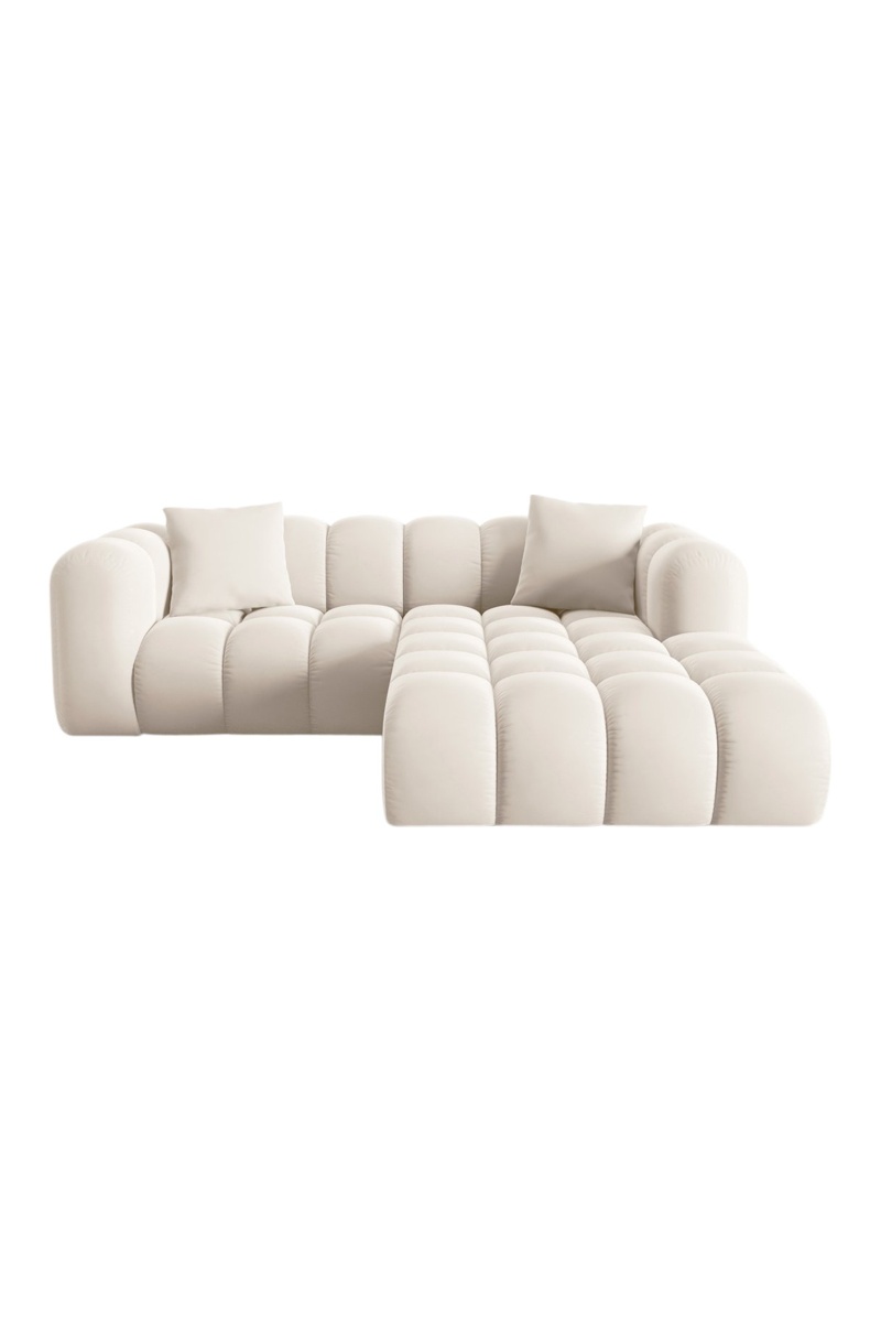 Canapé d’angle droit modulaire Halley - Beige - 3 places - En tissu velours