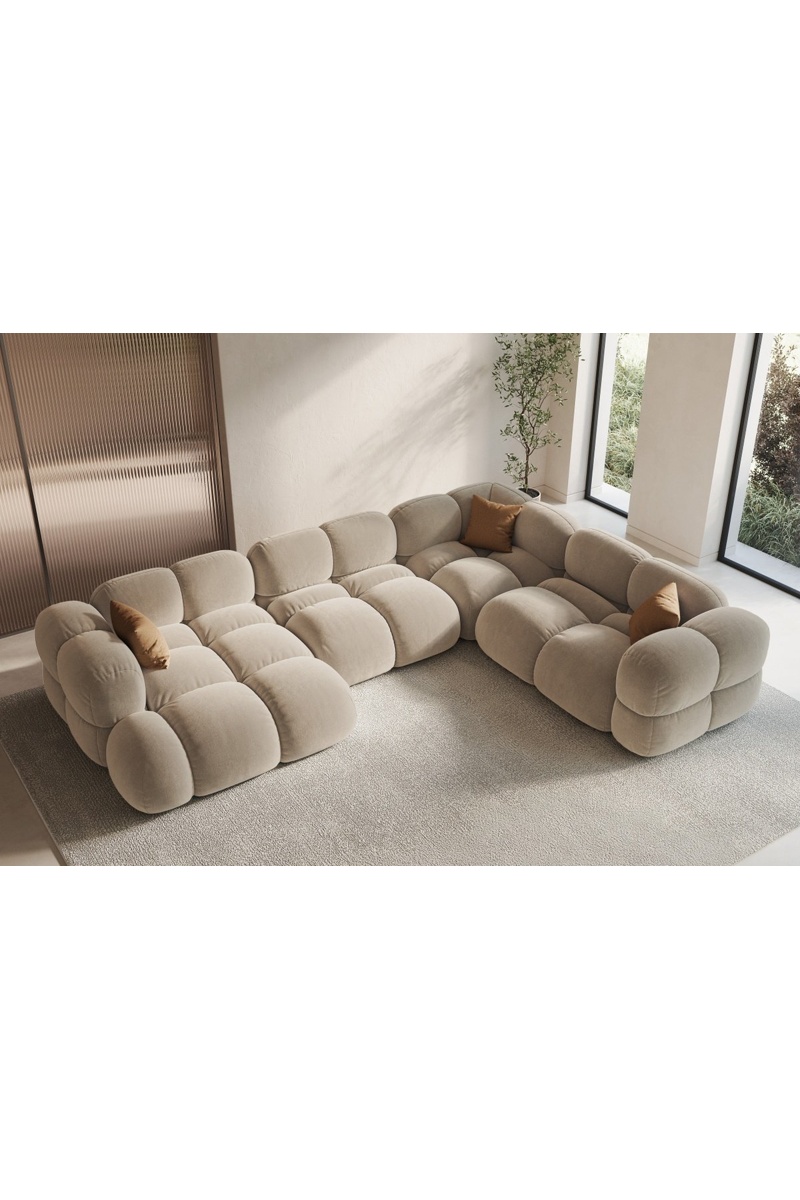 Canapé d'angle droit panoramique Loretto - Beige clair - 5 places - Toucher velours