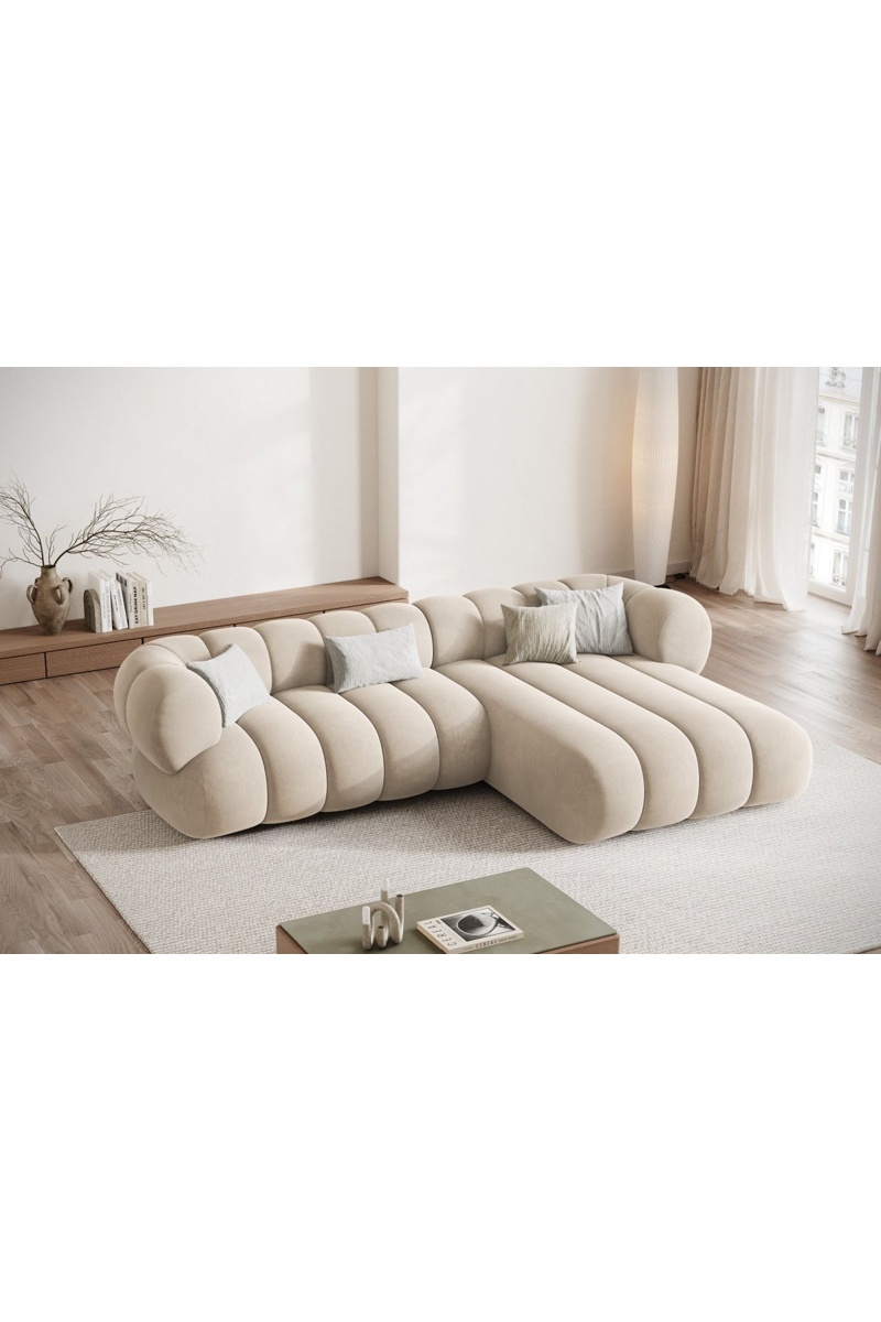 Canapé d’angle droit Koge - Beige clair - 5 places - En tissu velours