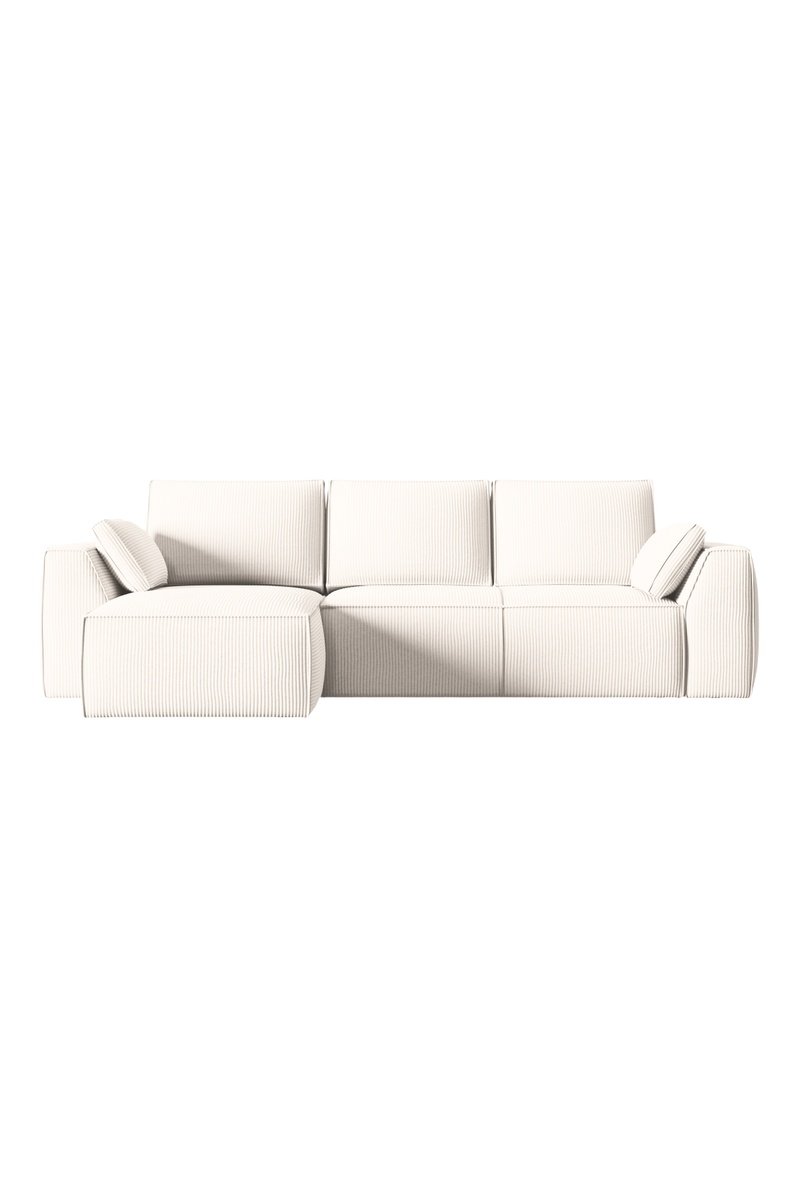Canapé d'angle gauche convertible Fennel - Ivoire - 3 places - En tissu velours côtelé