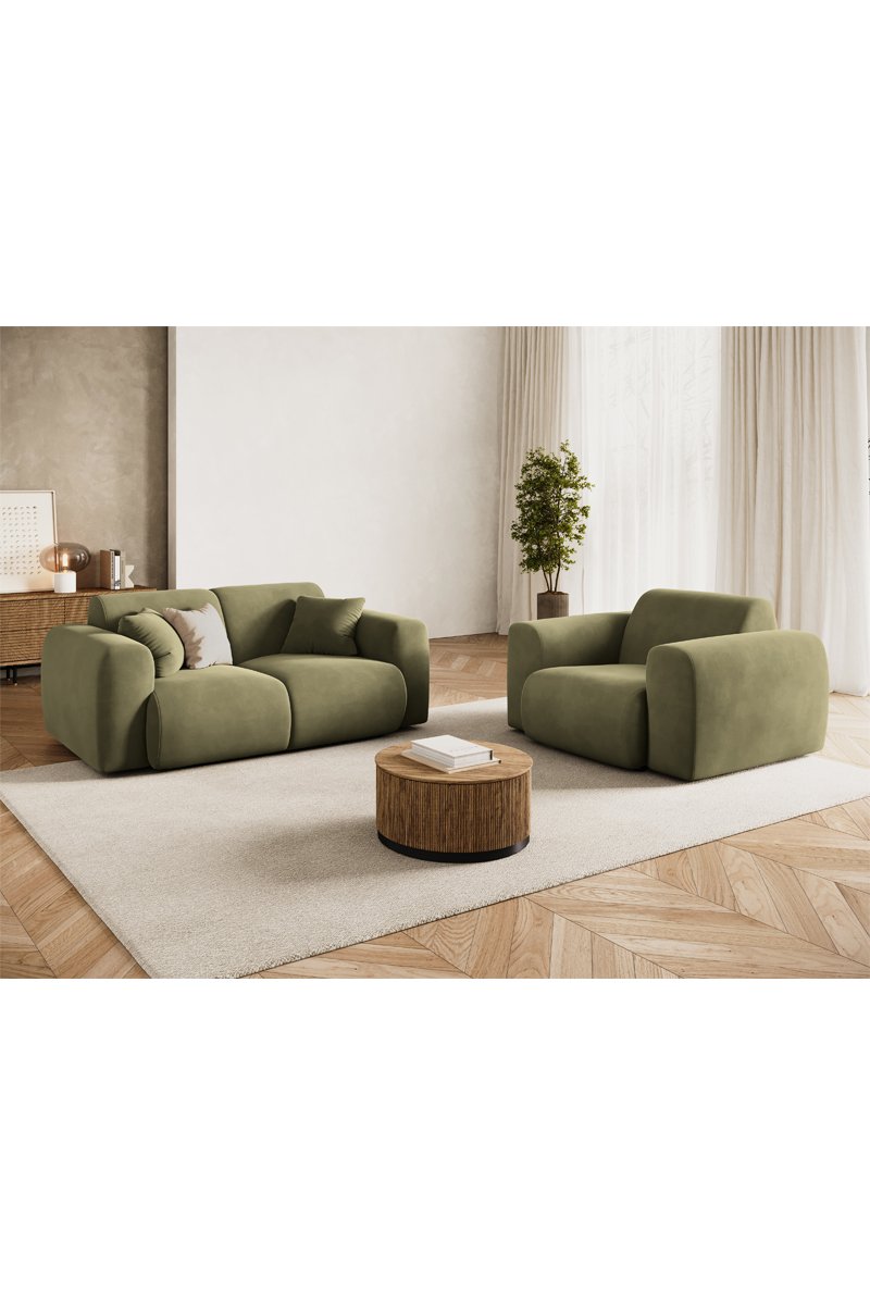 Canapé Nolio - Vert olive - 2 places - En tissu velours