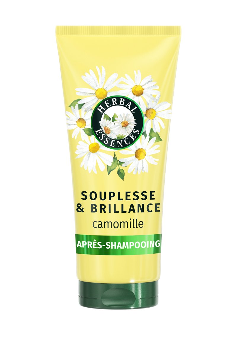 La nature et ses secrets vous offrent une chevelure éclatante grâce à l'Après-shampoing Herbal Essences Souplesse & Brillance Camomille.