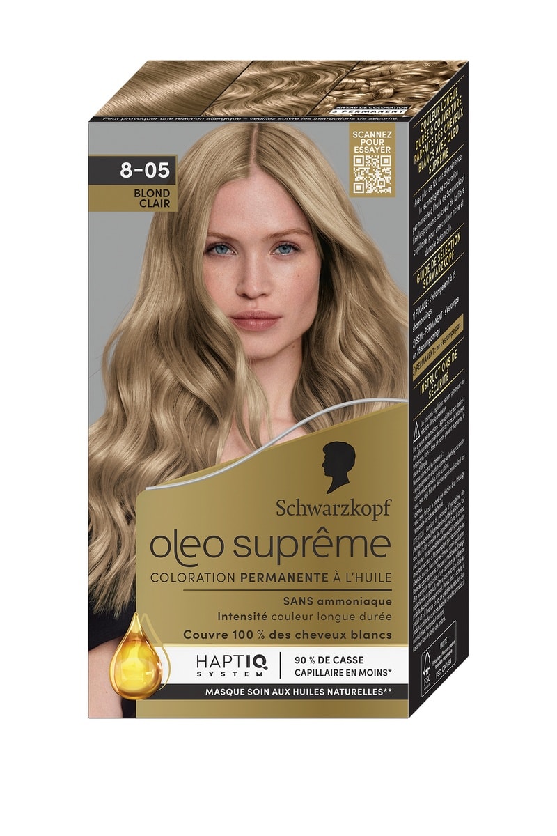 Enrichie d'un masque soin aux huiles nourrissantes, la coloration Oleo Suprême apporte une nutrition intense, redonne de la force aux cheveux et les rend visiblement plus beaux.