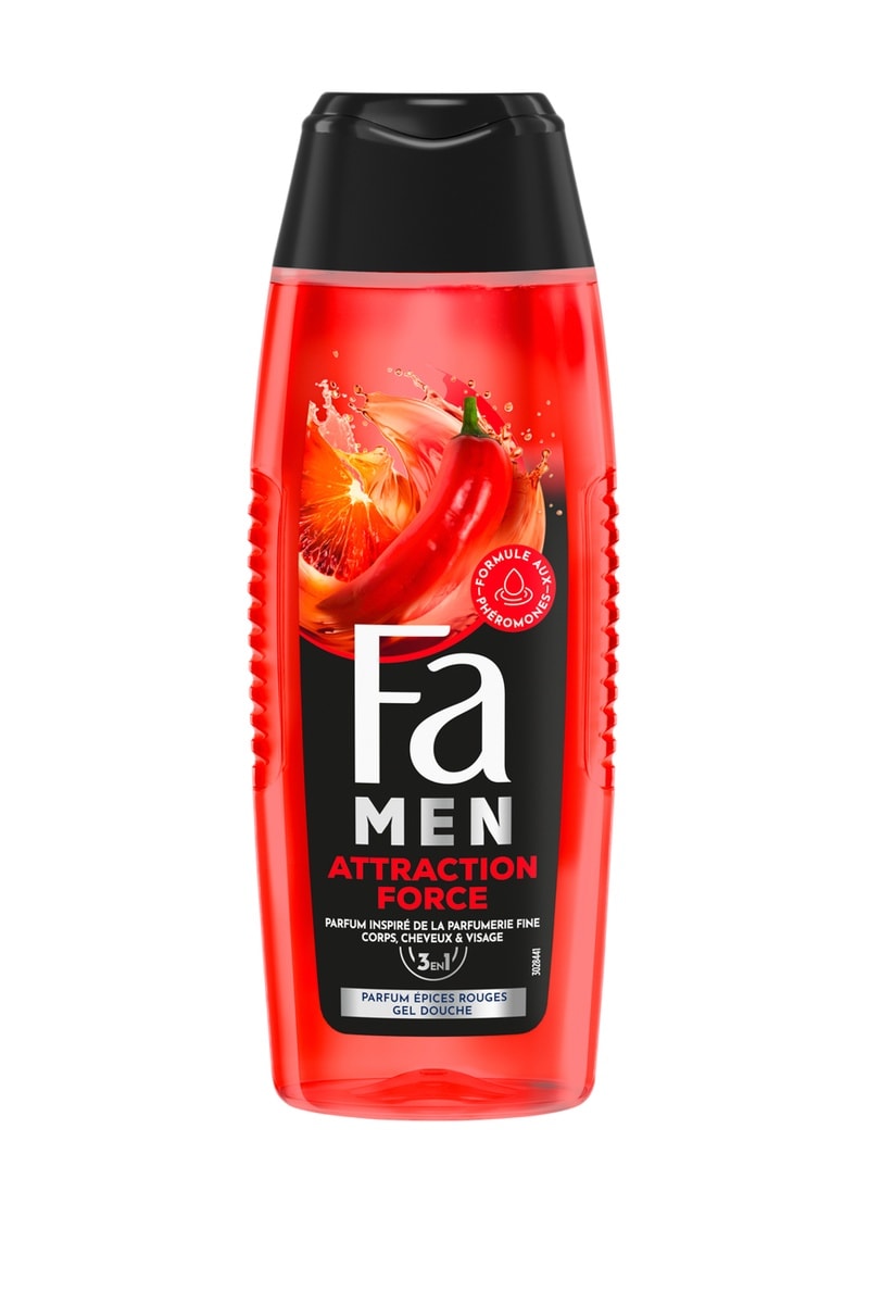 Ingrédients : aqua (eau), Sodium Laureth Sulfate, Sodium Chloride, Cocamidopropyl Betaine, Parfum (fragrance), Androstadienone, Glyceryl Laurate, PEG-7 Glyceryl Cocoate, PEG-120 Methyl Glucose Dioleate, PEG-200 Hydrogenated Glyceryl Palmate, Acide citrique, Hydroxyde de sodium, Limonene, Tetramethyl Acetyloctahydronaphthalenes, Linalyl Acetate, Linalool, Benzoate de sodium, CI 16035 (Rouge 40), CI 17200 (Rouge 33), CI 42090 (Bleu 1)
