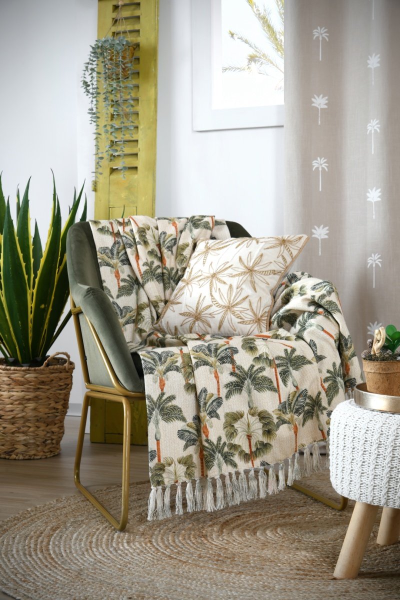 Plaid Casablanca - Ecru et vert - 125 x 150 cm