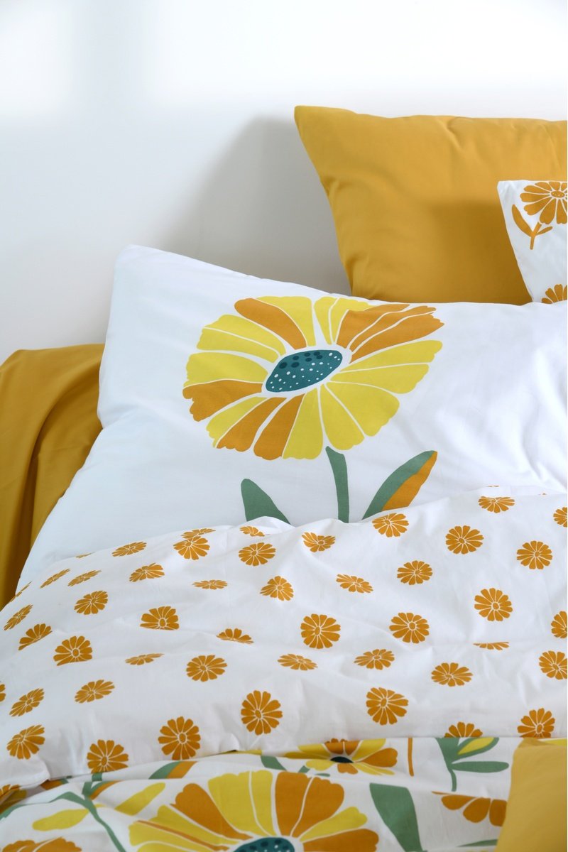 Taie d'oreiller en coton Blandine - 78 fils/cm² - Moutarde