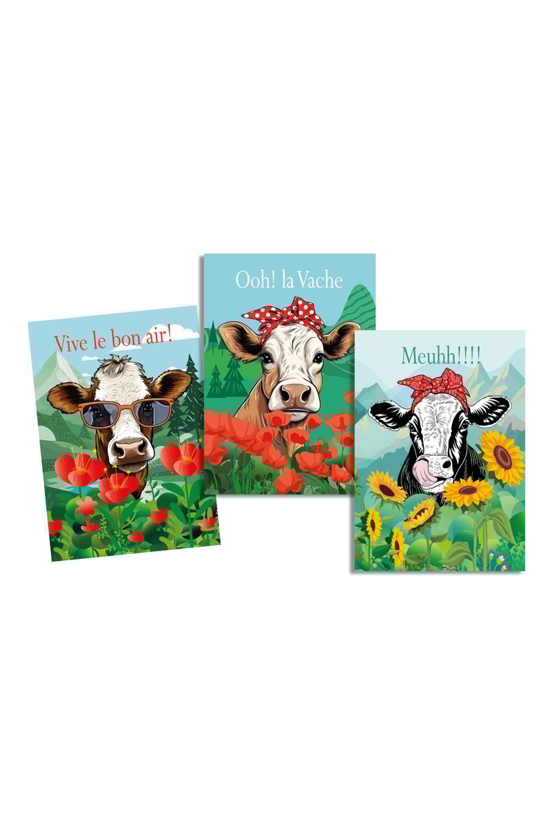 Motifs vache et fleurs.