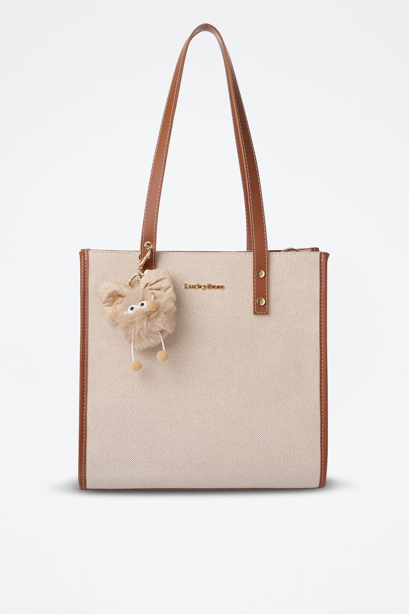Porte-clés avec empiècement en fourrure synthétique et logo métallique devant.