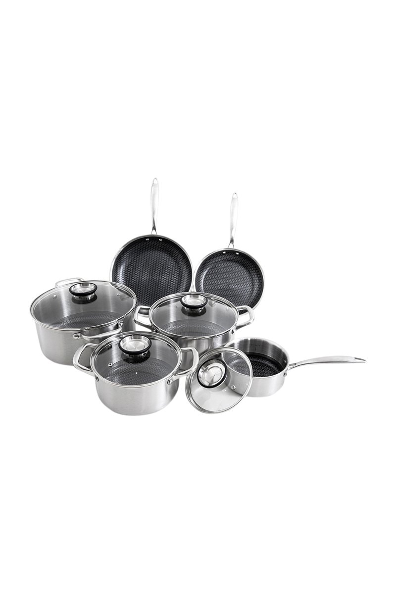 Batterie de cuisine en acier inoxydable comprenant :