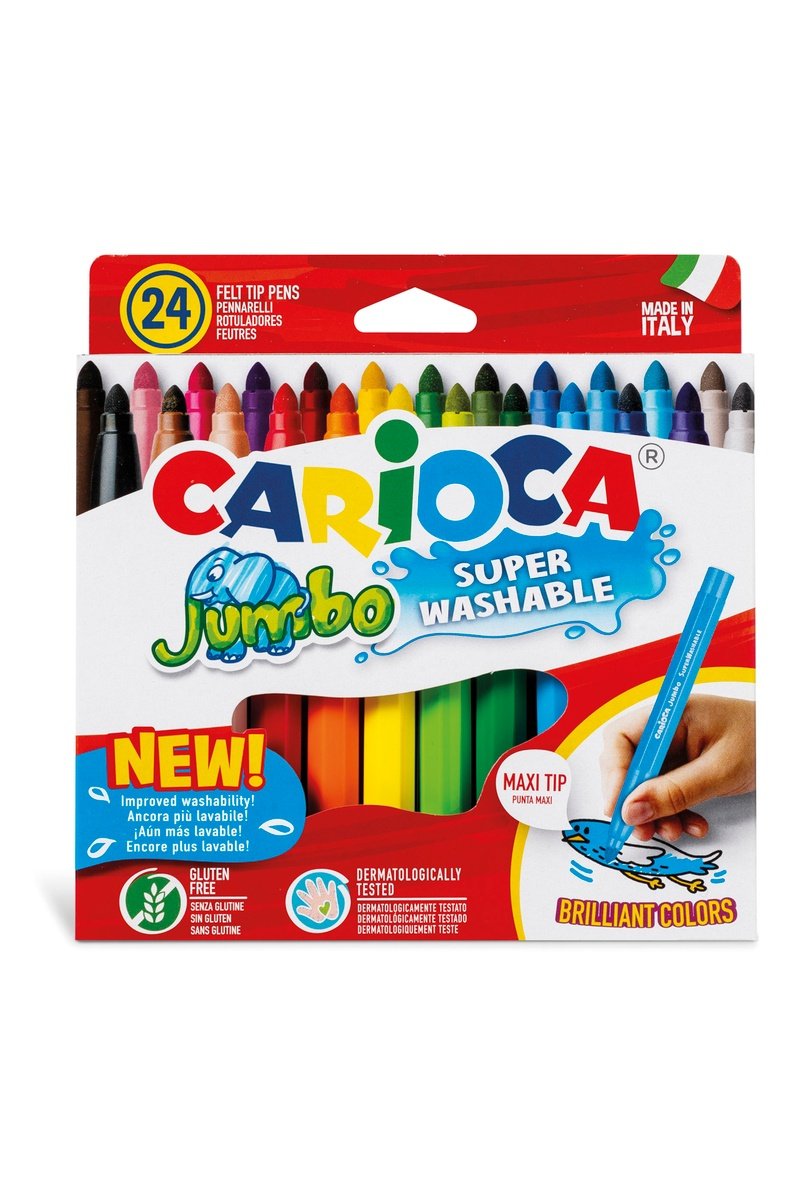 Carioca est l’une des principales entreprises italiennes d’articles pour l’écriture et le dessin. Qualité, sécurité et couleurs vives se retrouvent dans ses gammes de feutres, crayons de coloriage, peintures, pastels, jeux éducatifs et loisirs créatifs, développant sans limites la créativité et l’imaginaire des plus petits.