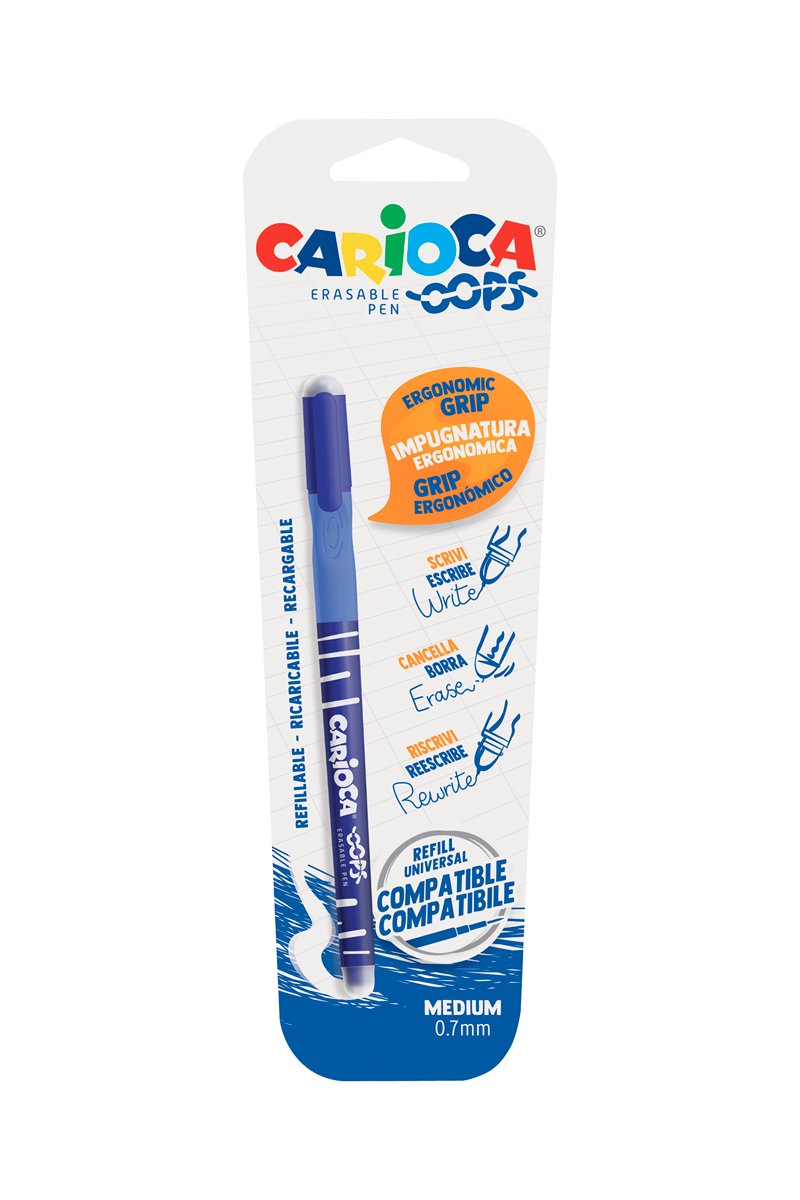 Stylo effaçable et rechargeable Oops - Bleu