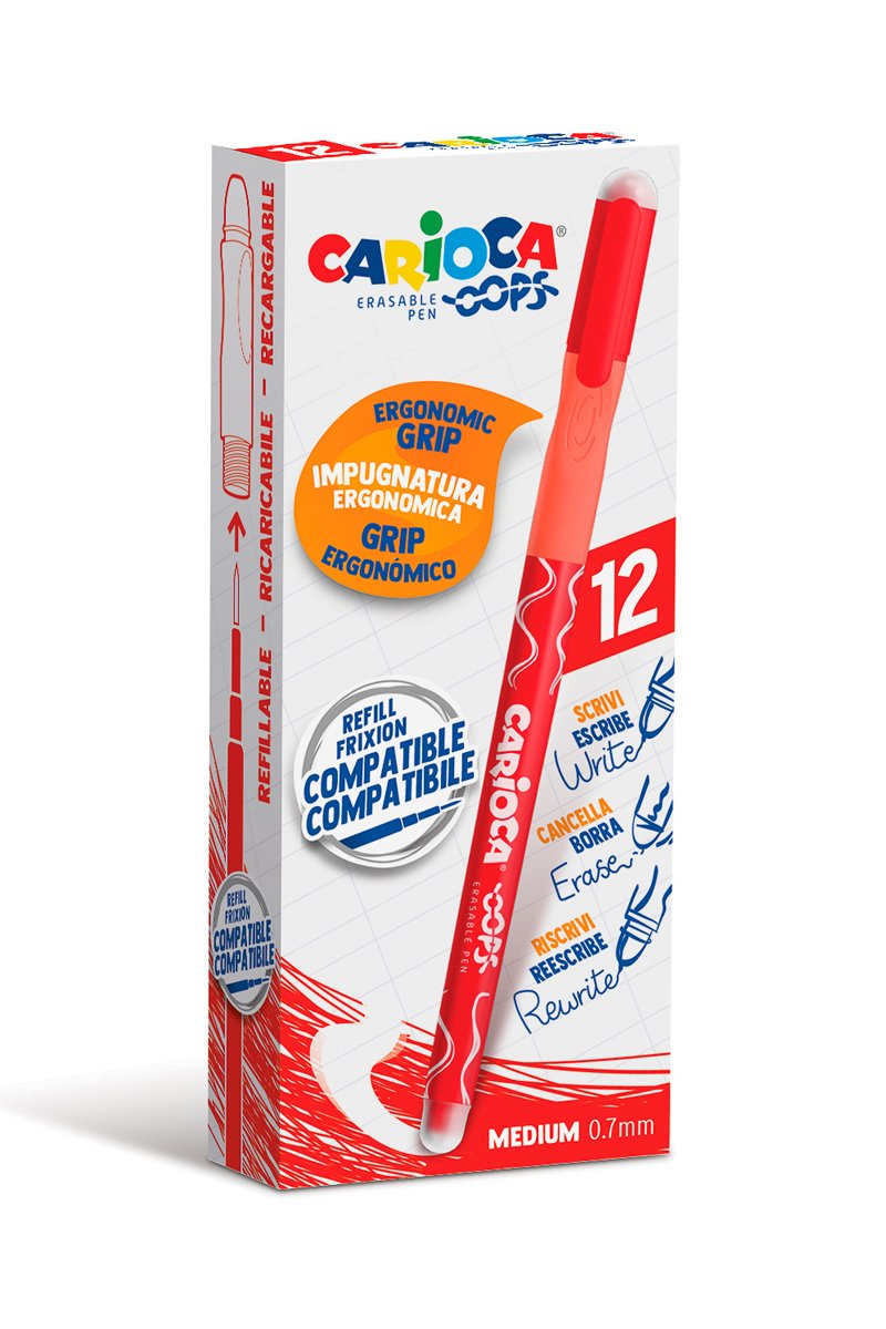 Boîte de 12 stylos-bille effaçables et rechargeables Oops - Rouge