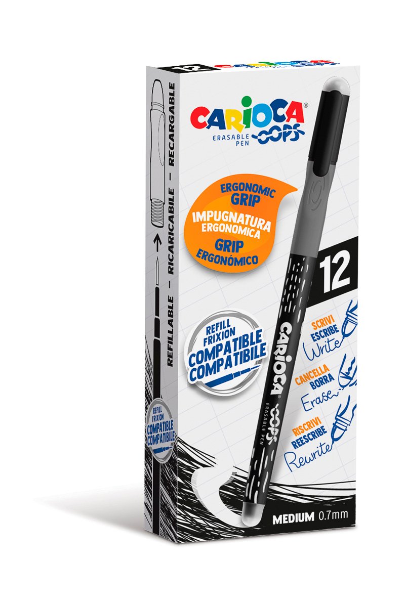 Boîte de 12 stylos-bille effaçables et rechargeables Oops - Noir
