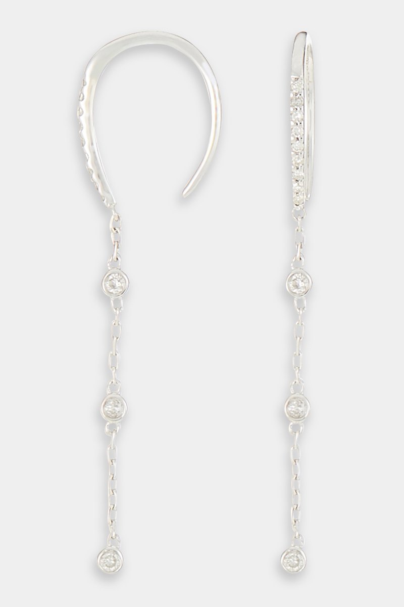 Boucles d’oreilles pendantes en or blanc serties de 12 diamants.