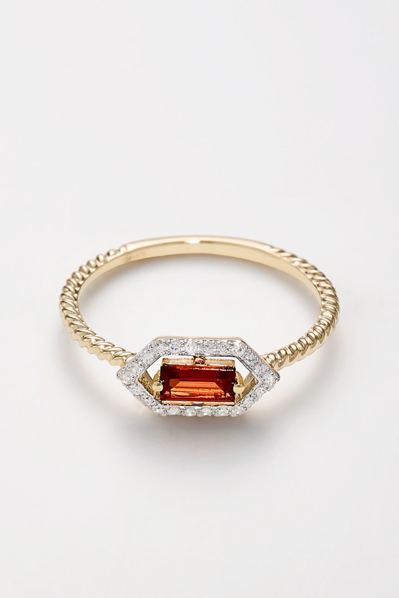 Bague Isaline - Or jaune, diamants et grenat