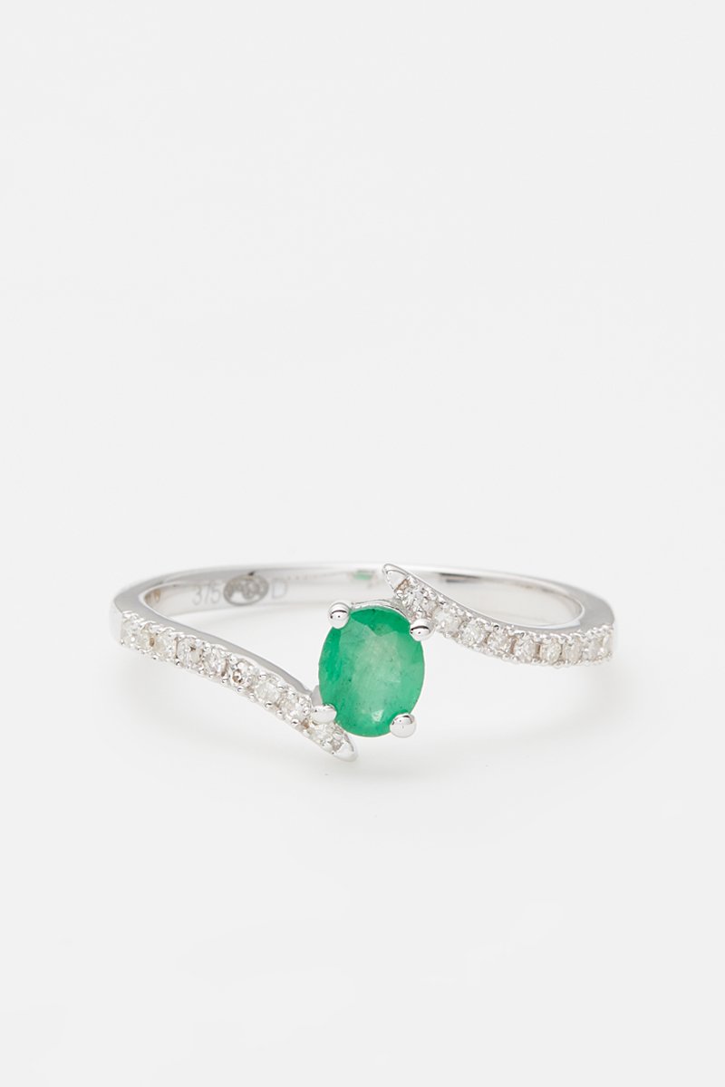 Matière : or blanc 375/1000, diamants 0,09 carat/18 et émeraude 0,35 carat