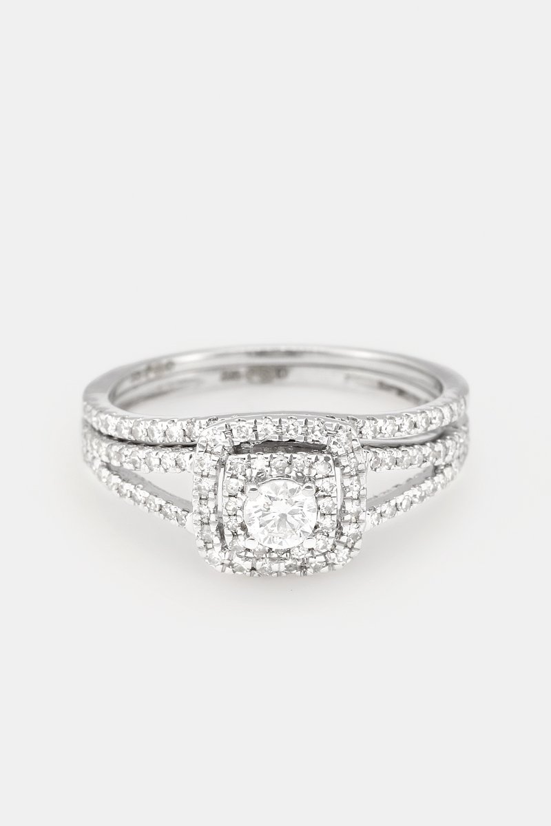 Alliance et solitaire Carré somptueux - Or blanc, diamants et solitaire
