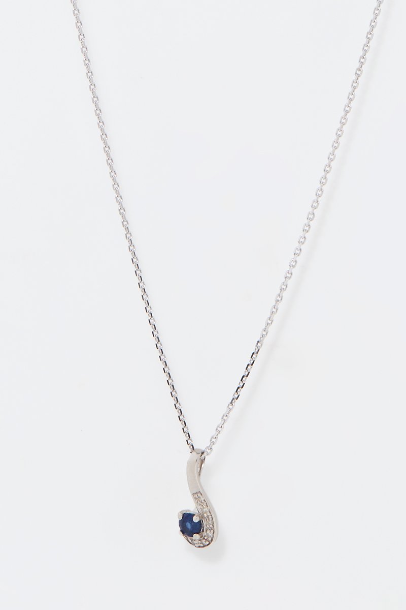 Pendentif en or blanc serti de 6 diamants et d'un saphir.
