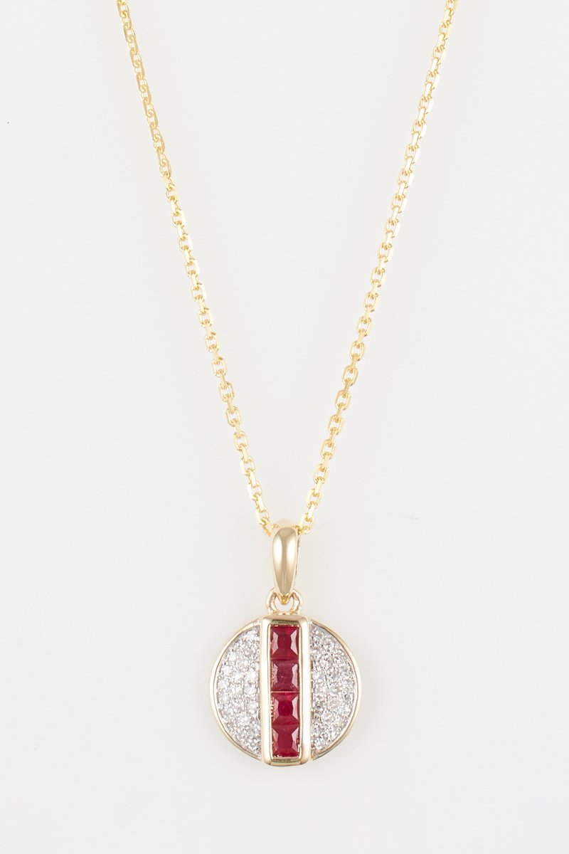 Matière : or jaune 375/1000, diamants 0,094 carat/40 et rubis