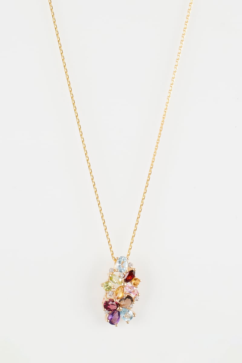 Pendentif Eléa - Or jaune, diamants, améthyste, topazes, citrines, saphirs, grenats et péridots